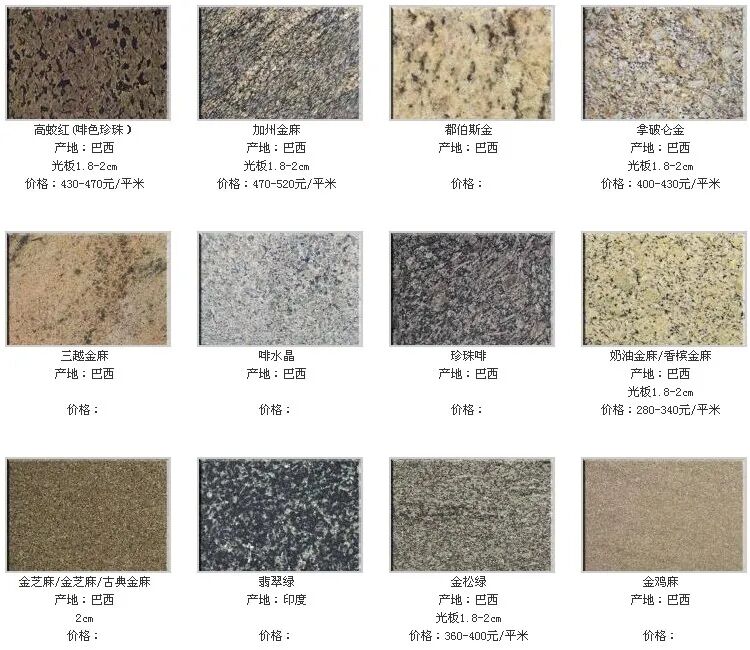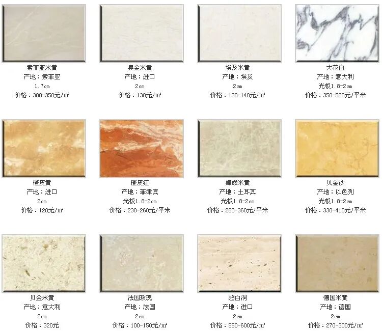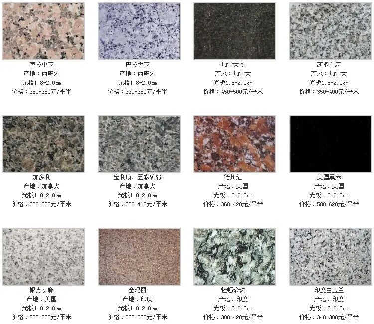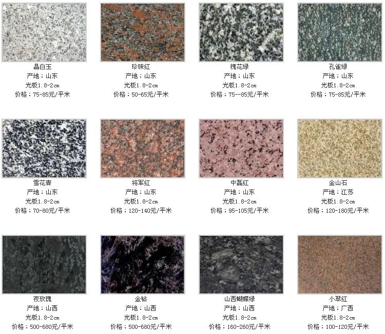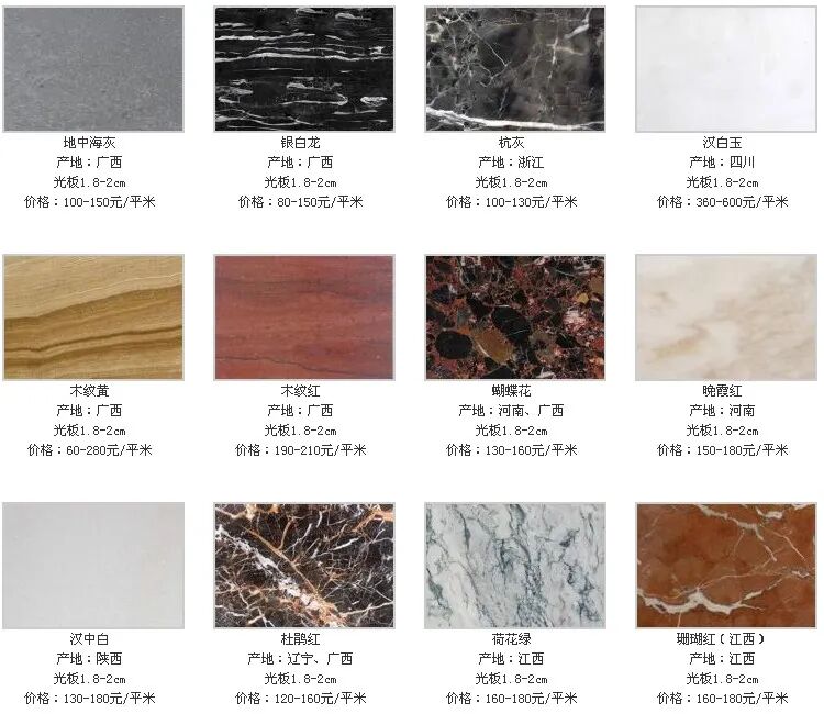 今天小编分享一些国产石材及进口石材价格,仅供参考。