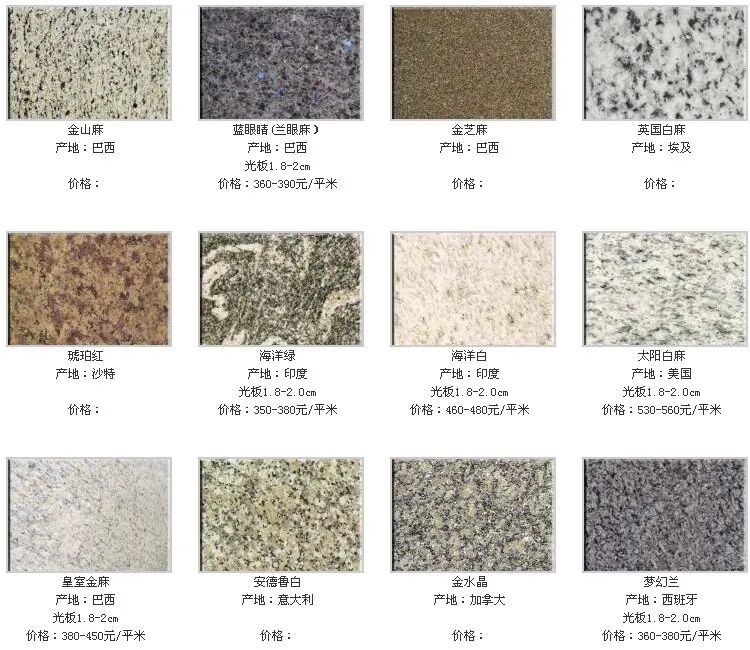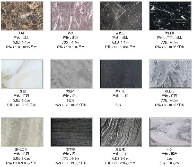 天然石材图样及价格参考大全,有你想要了解的石材吗?