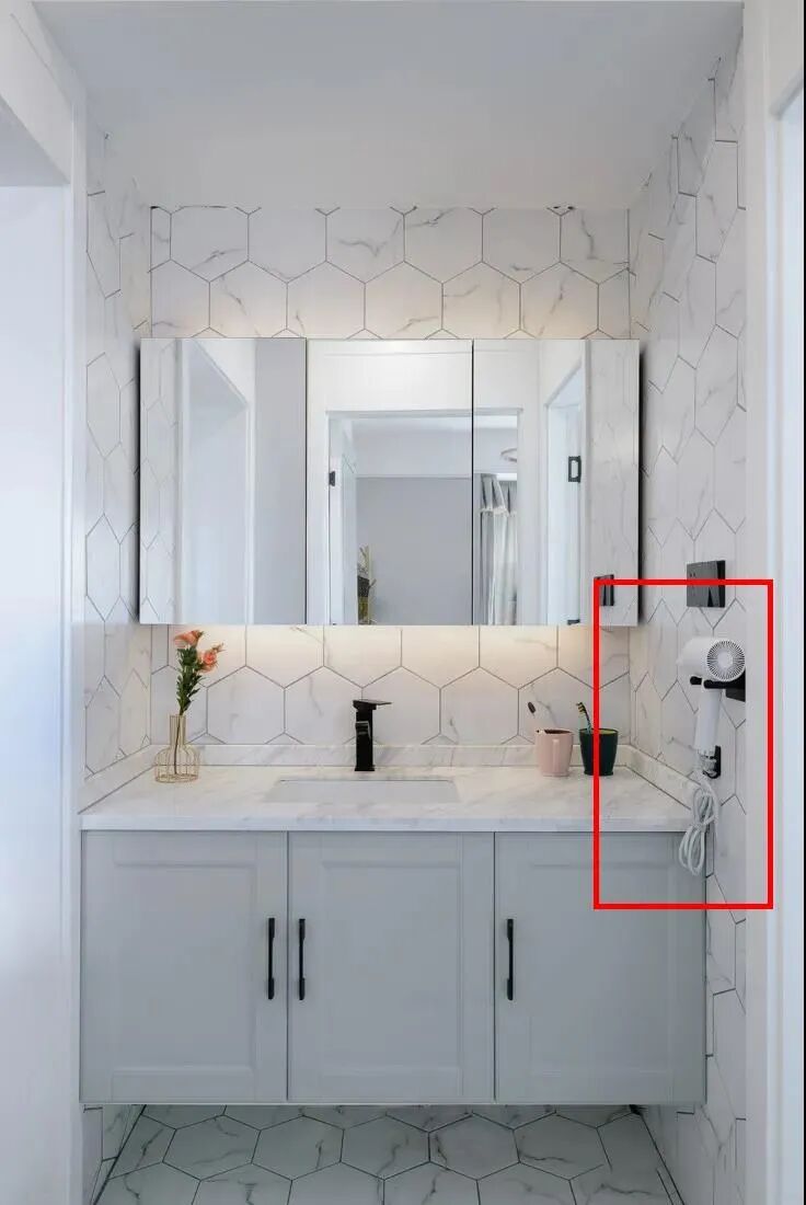 吹风机的收纳架也得安排上,即取即放,比放置于柜子里要方便不少
