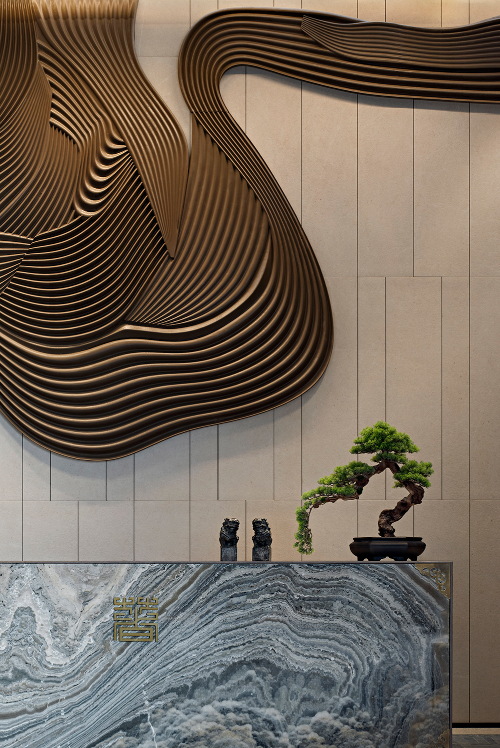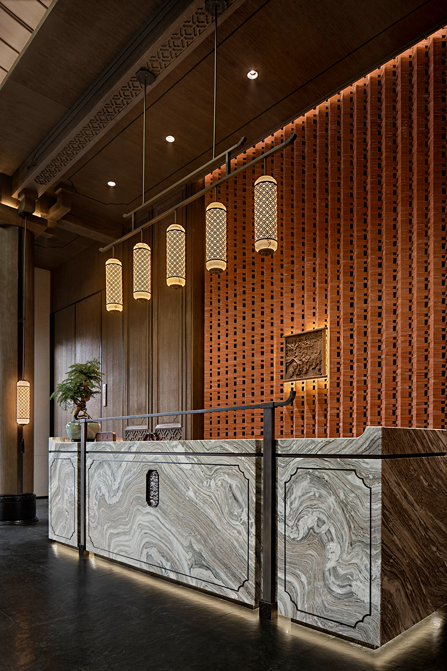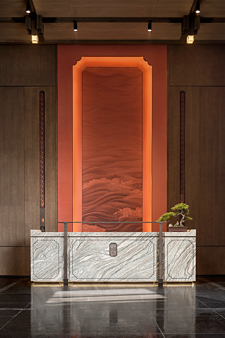 天然大理石的纹理搭配让整个大堂空间更高雅贵气