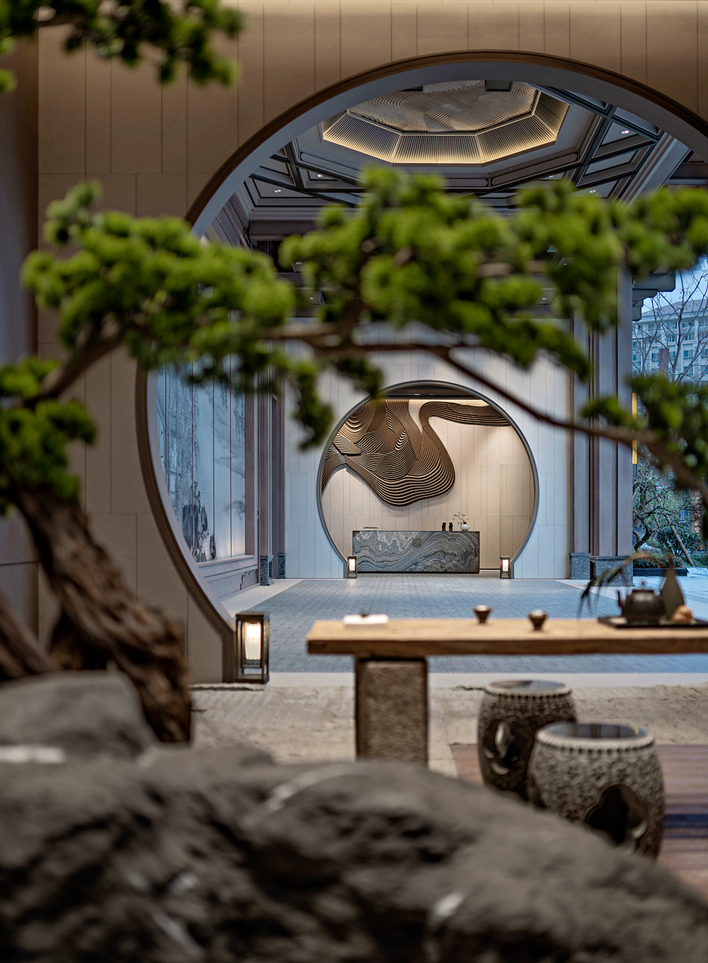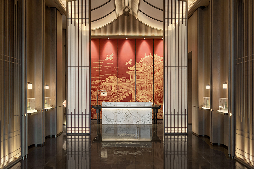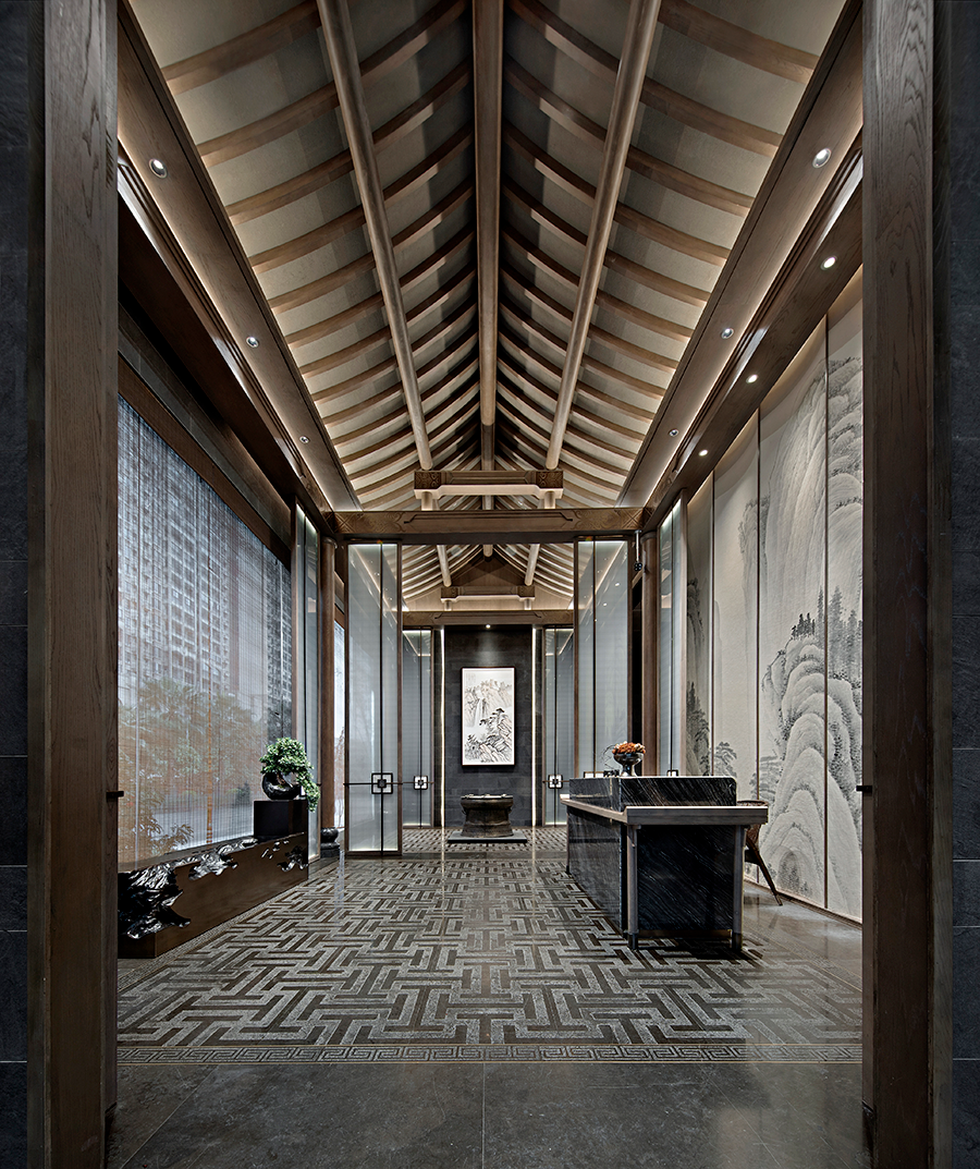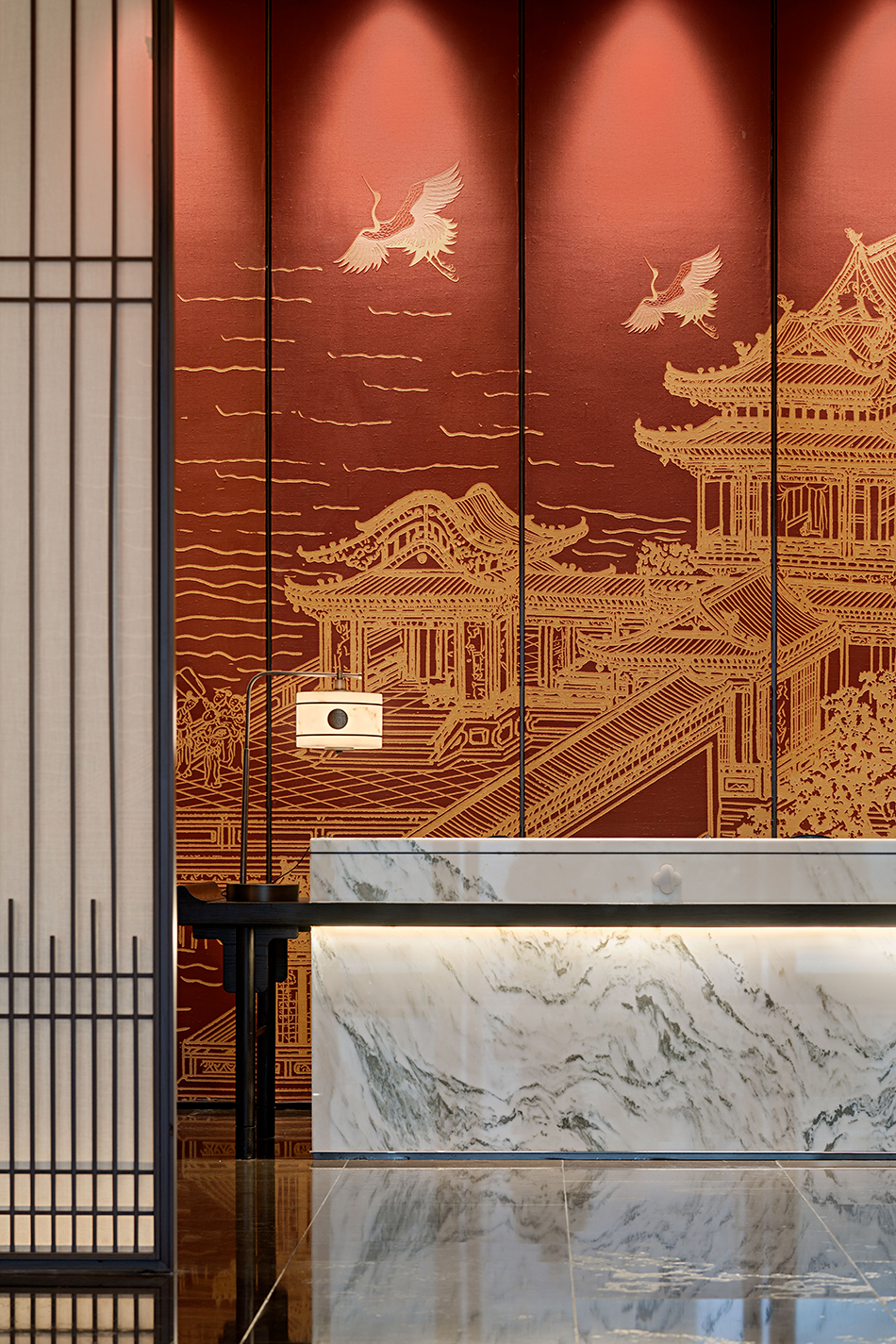 天然大理石的纹理搭配让整个大堂空间更高雅贵气