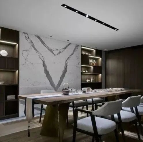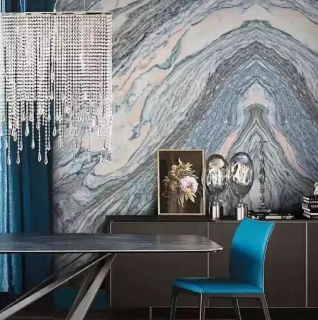 我们常说大理石是优质的建筑材料,具有很大的包容性,可塑性,大理石种类繁多,纹路变化万千,有着极具艺术性的纹彩,而石材人对石材的天然纹理进行“二次创造”可以更好的发挥石材的整体感。