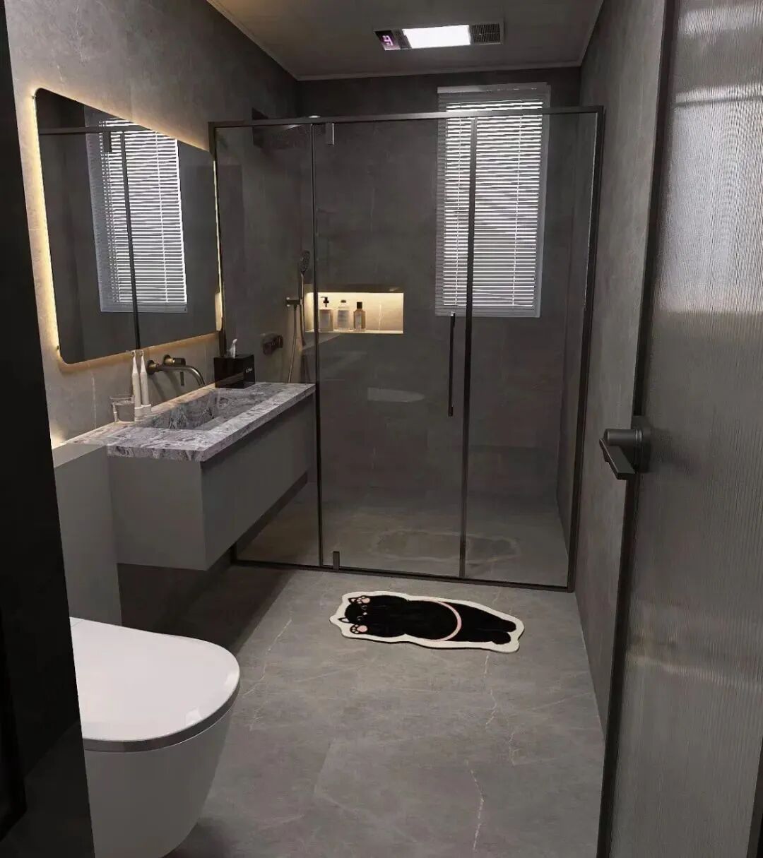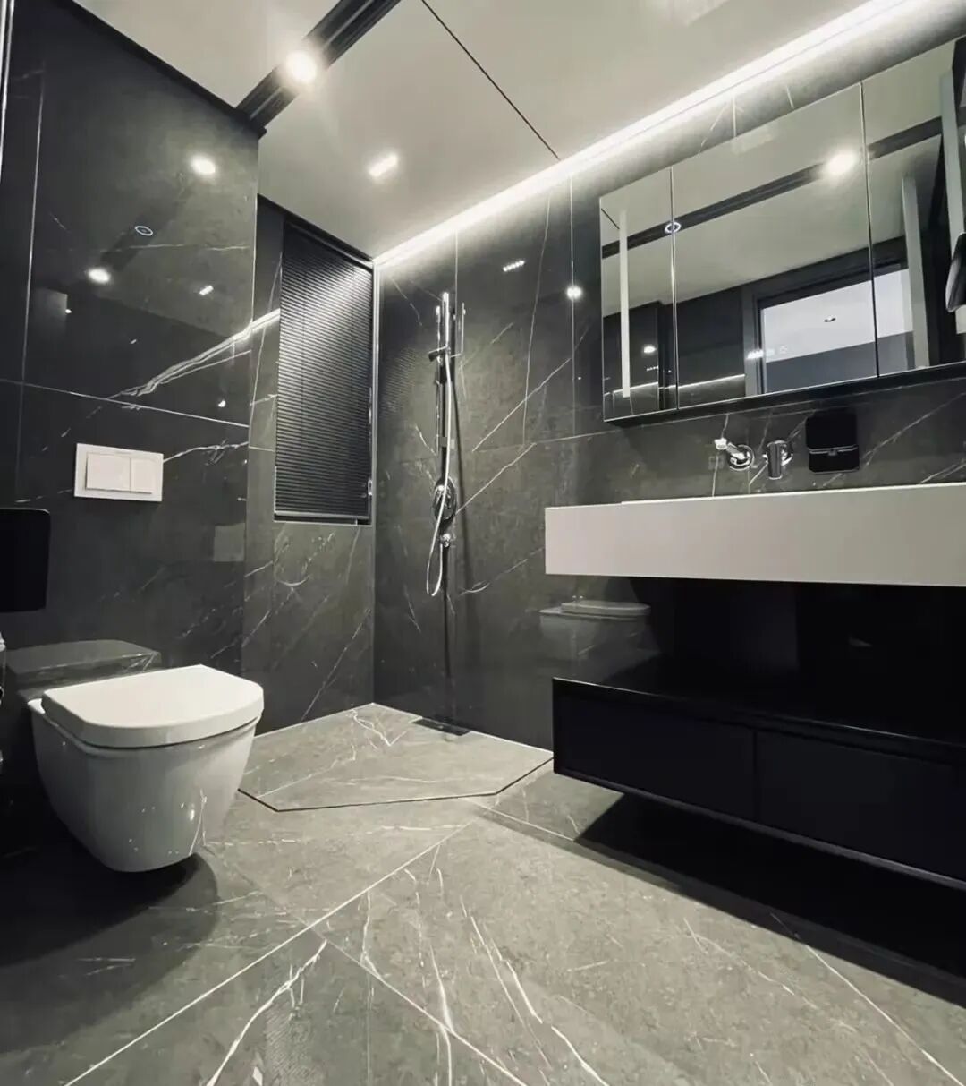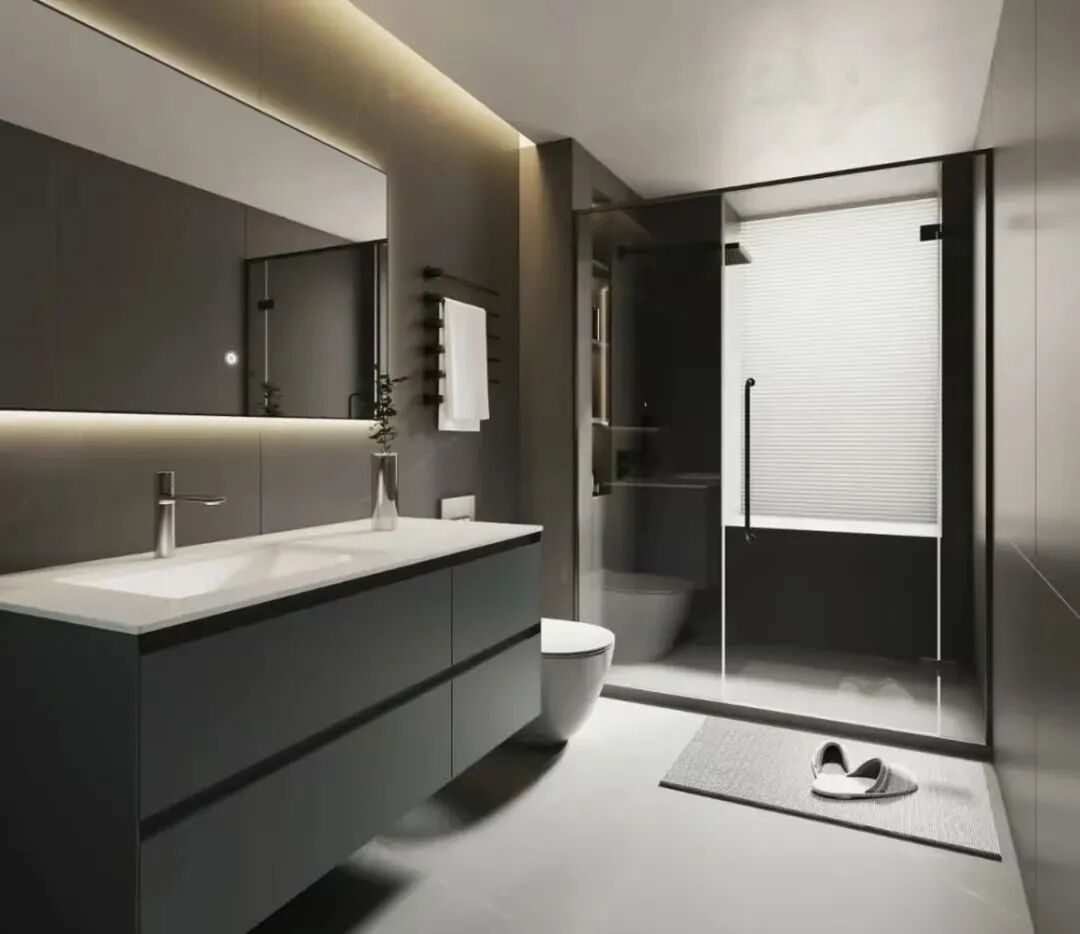 暗色灰卫生间有自己的禁欲与张扬,仿佛在神秘中穿梭,在理性中发挥。而且暗灰黑像英伦绅士一样,永远都能自成一派,有自己的独立独行。