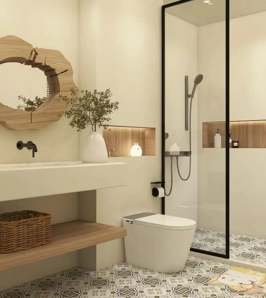浅浅淡淡、优雅温润的色彩搭配时,用时尚界人士的话说:毫不费力的时髦,融入了淡淡的米色、咖啡色和粉色,让空间多了一种温暖、柔和的感觉,让卫浴空间不再冰冷。