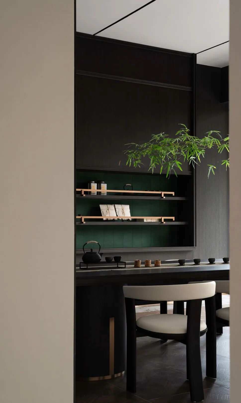 回廊风起,闲坐堂前。茶室是精神的休憩之所,被赋予温和的质感和自然的特性,现代茶室之美,以恰当的留白,赋予空间自在盎然的氛围,在不经意间营造出东方悠然的清雅意境。