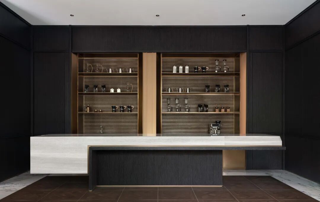 咖啡区除却繁杂的元素,以开放、自由的手法糅合自然光景,营造出摩登时尚的空间气质。借光为引,在雅奢有度的氛围中,与来访者内心共情,品味悠然时光。