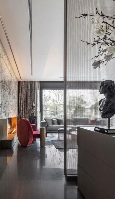 这类背景墙以素色为主,主要利用材料本身的纹理做装饰,不需要用力“凹造型”,灯带也不用太亮,这里的光只是装饰的一部分,并不需要作为照明使用,所以朦胧一点就很好,太亮反而容易造成视觉疲劳。这种悬空电视墙造型并不是所有风格都适合,通常会用在现代风格、轻奢风格、极简风格这类比较简约有现代感的风格中。如果非要用在带有古典气质的传统风格中就会显得很奇怪,在设计的时候一定注意整体搭配得宜。