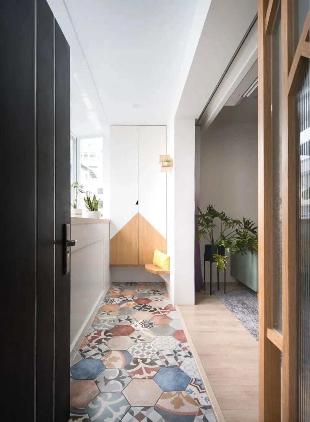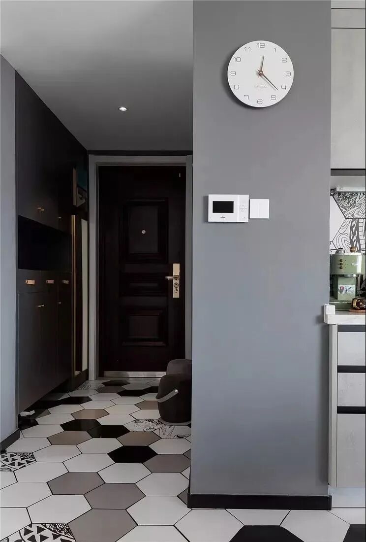 玄关墙面、地面的空间划分: