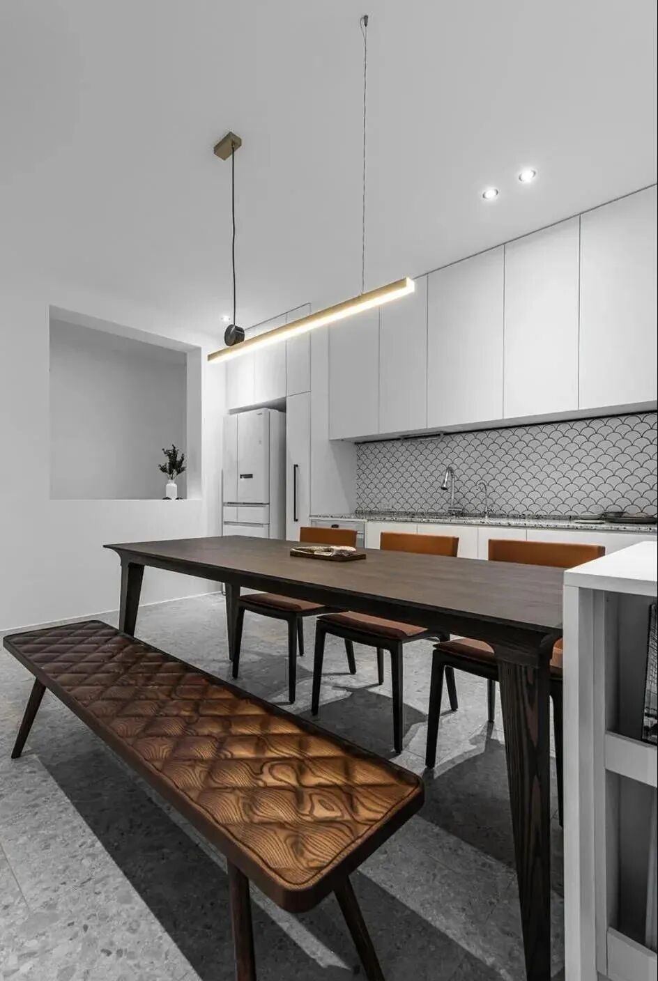 ▲尤其是客餐厅一体的布局,可通过地面铺贴异形砖来划分餐厅空间