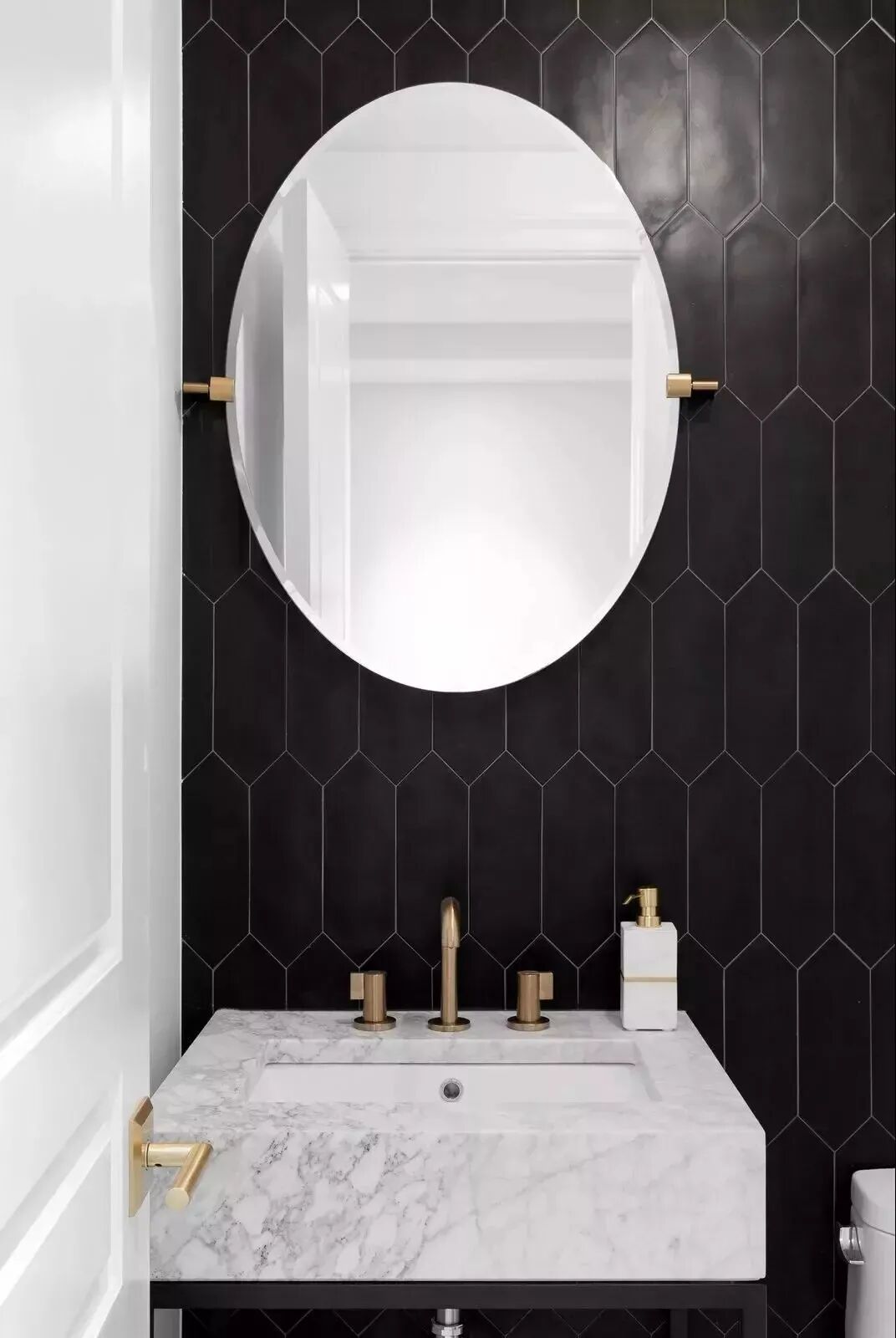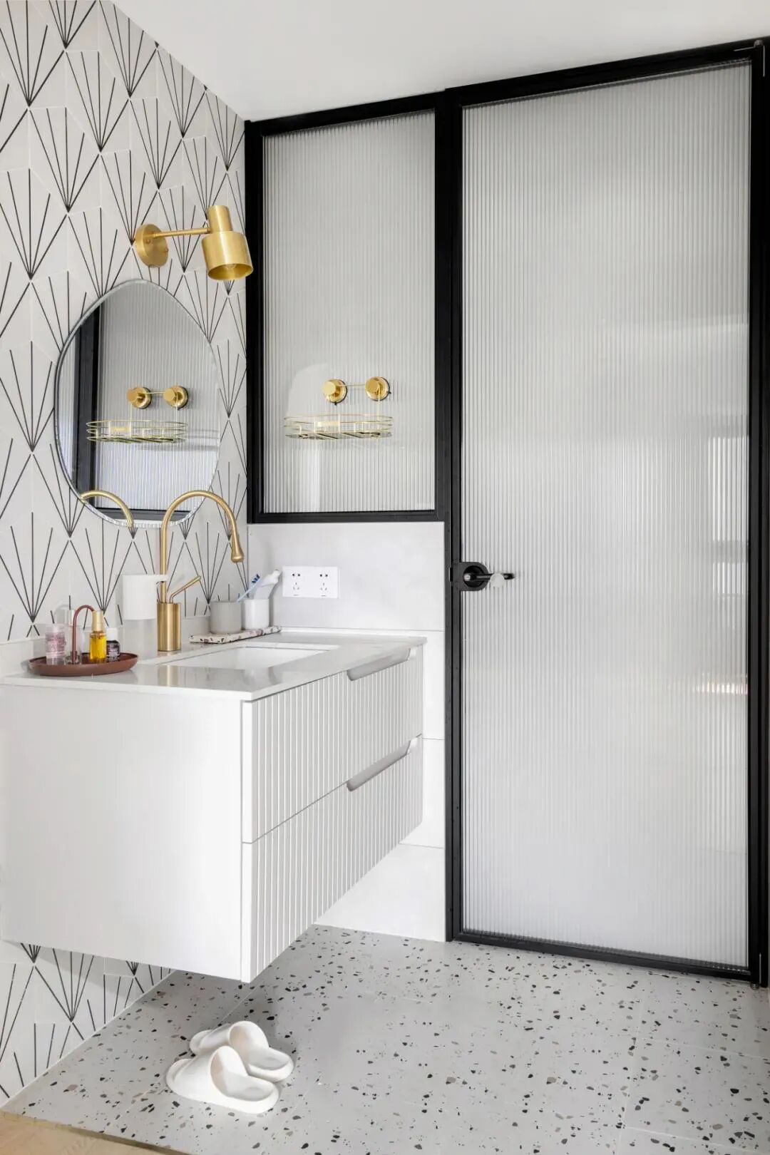 卫生间区域的墙面地面,都可以用异形砖来提高颜值: