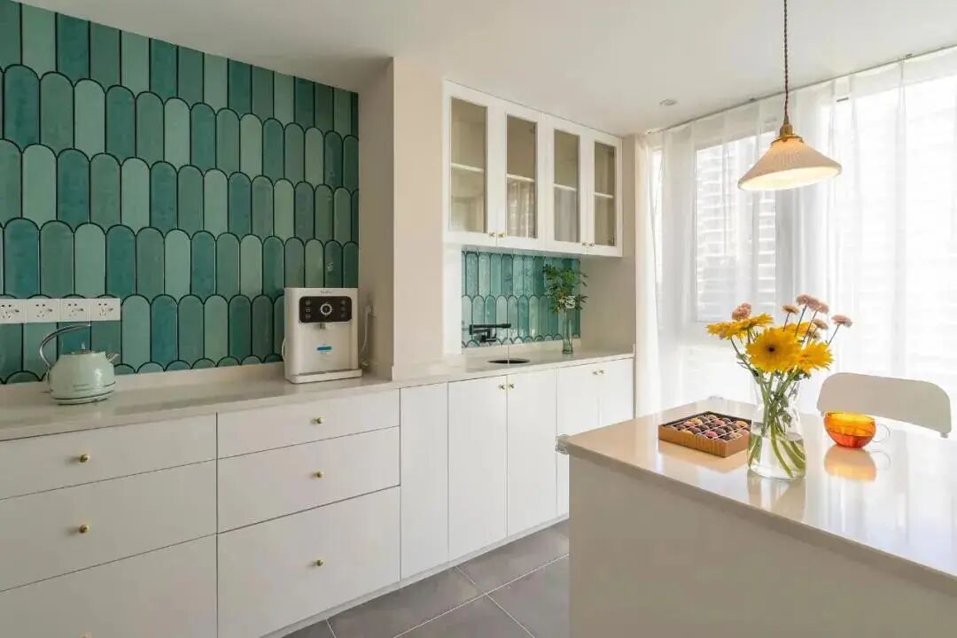 厨房色彩太单调怎么办?不妨在局部铺贴异型砖