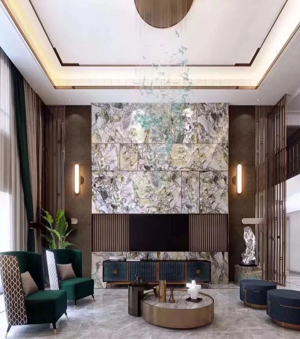加上不同色彩的条纹和图案,使大理石尽显高雅、靓丽之本色,常为高档建筑及星级酒店的大堂、电梯间所采用。大理石的强度相对花岗石要低一些,故常用于室内装饰。