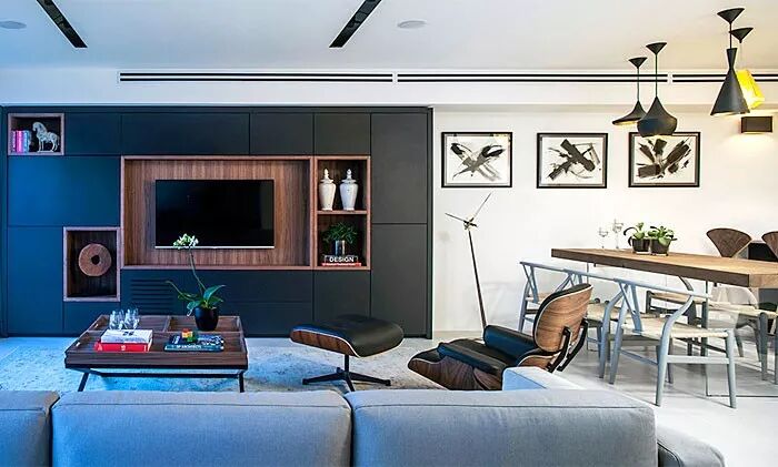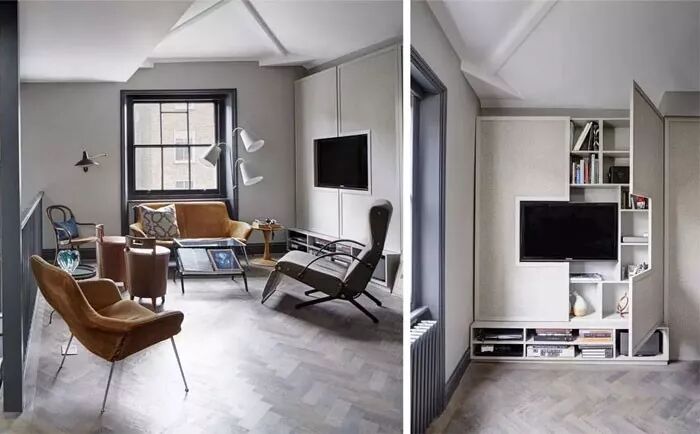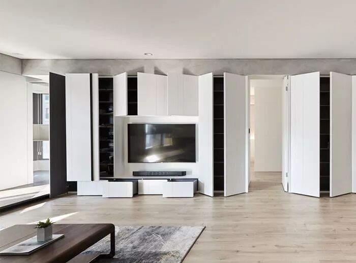 带有储物间的电视墙是真的非常适合现代设计。