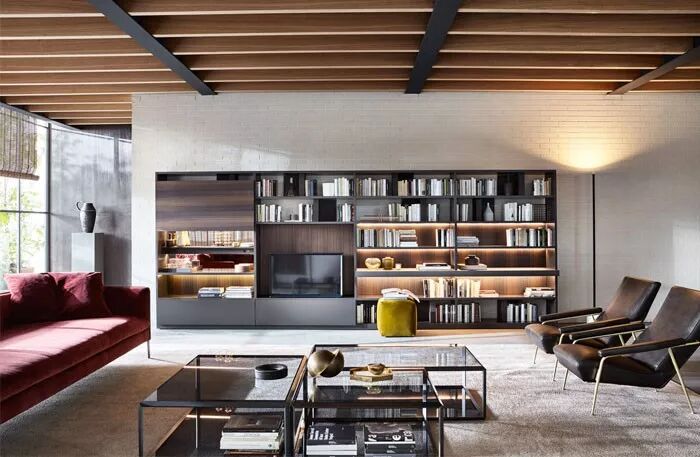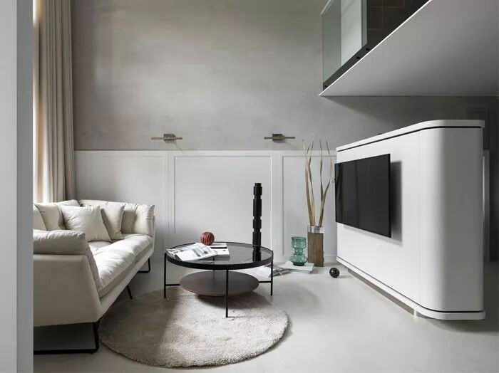 如果不喜欢极简风格的,可以再加一些设计独特的收纳柜、扁平或长线条的装饰柜,以及一些极具艺术感的小饰品、书籍、花器等等。