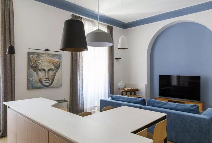 蓝白色之间有了拱门元素的参与,它们更好地融合在了一起。