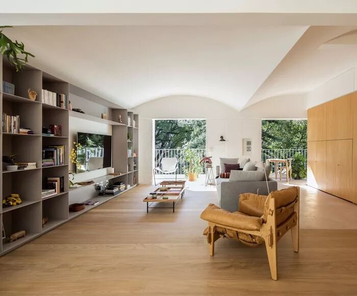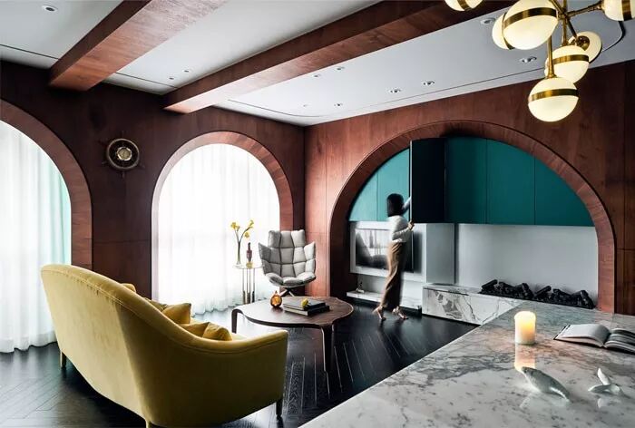 拱门把墙壁、储藏室、壁炉、电视机一一连接了起来,展现了都市浪漫主义的缩影。