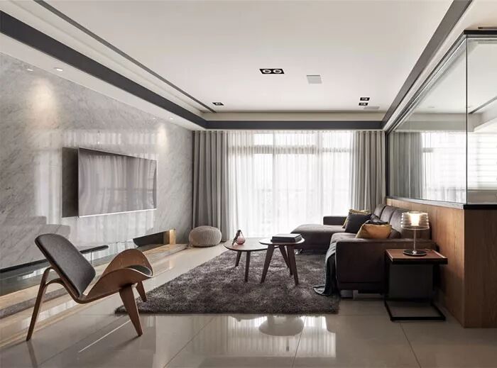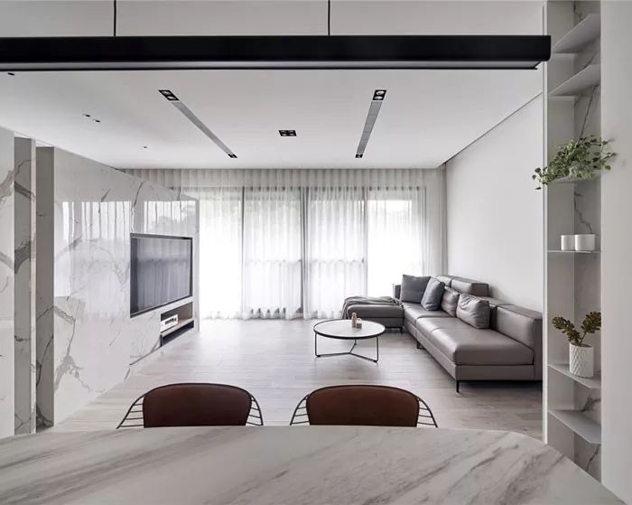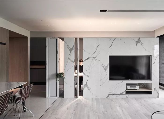 纹理不同的石材赋予电视墙体更多有机性和表现力,而大理石以其轻奢感成为现下设计的宠儿。