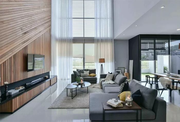 隔断板(墙)也适用大户型、大平层,能改善改善空间的流动性。当然,形式也可多样化:半墙、矮墙、中部镂空旋转式、底部添加收纳柜……