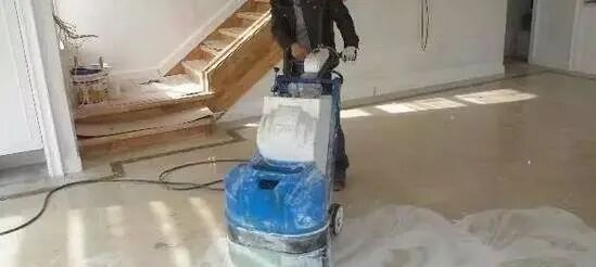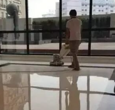 对满足铺装后养生期的石材进行再次防护和无缝处理后的整体研磨