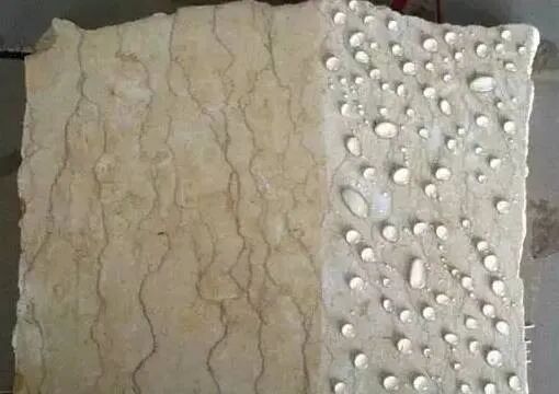 水分控制:严格遵循水泥砂浆的配比标准,并控制水分的干湿比例进行铺贴,底层砂浆的水份一般以——手攥成团,落地开花的原则,当然要综合考虑石材缝隙的宽窄对水分的蒸发速度,还有当日搅拌之铺贴砂浆次日使用时需重新进行检测,因为蒸发作用使得砂浆内的水分逐渐减少,导致水泥粘结力下降,这也是影响日后石材背面粘结性降低的原因之一。