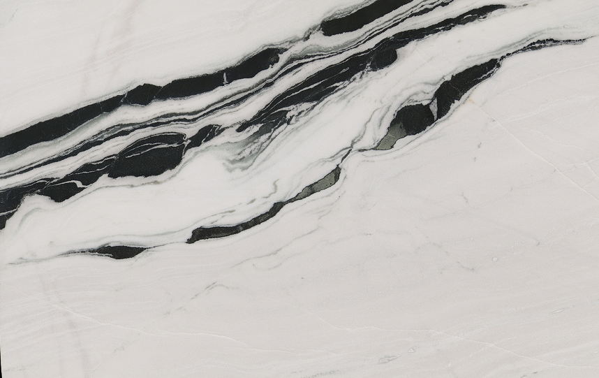熊猫白是产自四川的白色大理石,纹理细密,色泽洁白,质地坚硬,有着和熊猫一样黑白交错的纹理。由于高品质大板产量稀少,所以价格也非常昂贵,售价可达2000一平方。