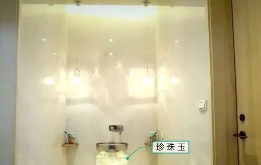 见石材如其名,珍珠白皙,亮玉透光,每道光芒皆让人引发贵妃出浴遐想。