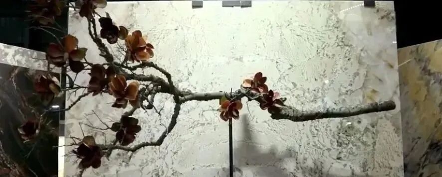 龙凤石,来自意大利。它的板面就像一幅画,像是一幅完整的画,又像是画到一半,留给人非常多的想象空间。