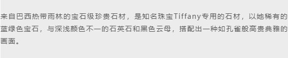 蒂芬妮Tiffany Blue是稀世珍品、宝石级的石材。
