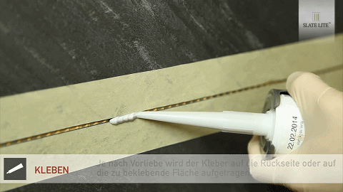 需要注意的是,一般单块超薄石材的四周提前贴好保护条,为后面两块超薄石材之间的勾缝做好准备。