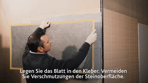 只需要对墙面打胶、抹匀之后进行湿贴便可非常牢固。