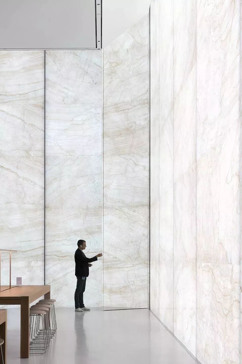 ▲澳门苹果金沙店内墙装饰,超薄石材