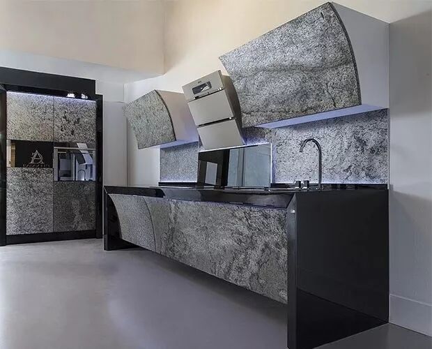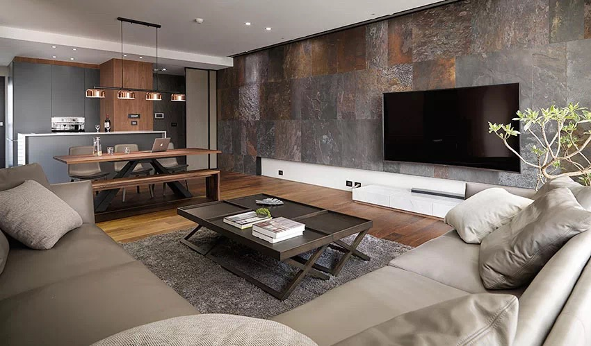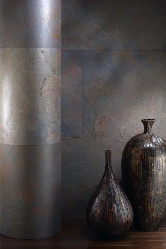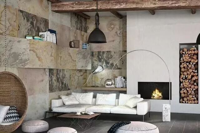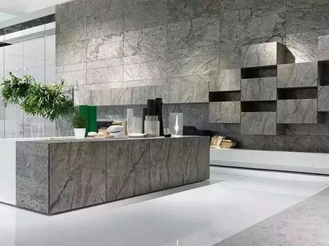 ▲超薄石材在室内的应用01.天然石材还是人工石材?超薄石材利用自然界中的板岩和砂岩等具有天然的分层性的石材,利用现代的纳米技术将其分层剥离出来。它完全保留了自然石材的纹路和肌理,是大自然的鬼斧神工与当代科技的结晶,其所具有的天然质感是仿石材料所无法比拟的。
