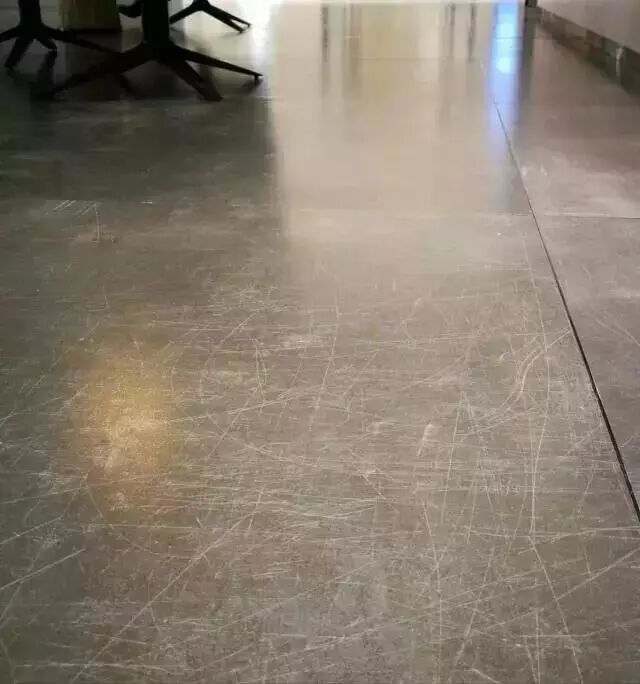 用家庭用的去污粉,加一点水使得瓷砖表面有划痕的地方潮点,然后轻轻地搓被划伤的地砖,搓掉后用一点上光蜡擦拭,就会发现原本有划痕的地方神奇地恢复原样了。