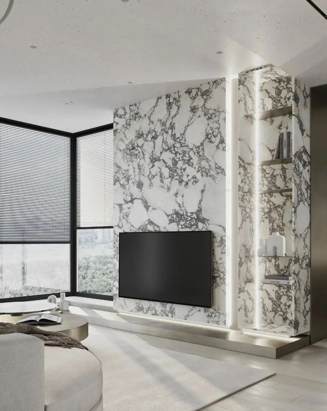 石材背景墙的高档材料,一般都是选用大理石,尤其是电视石材背景墙,在家装和工程设计中,已经成为了“焦点”,也是大户型居室的重点之一,在装修中占据相当重要的地位,不但吸引了人们的眼球,更是体现主人品味与个性化的特殊空间。