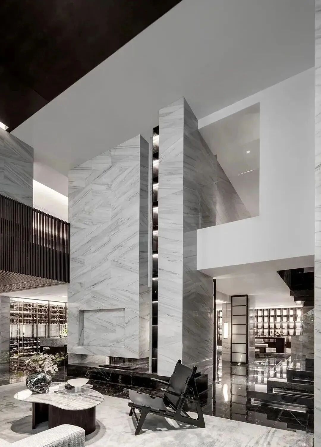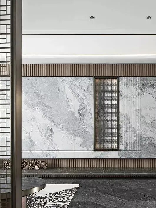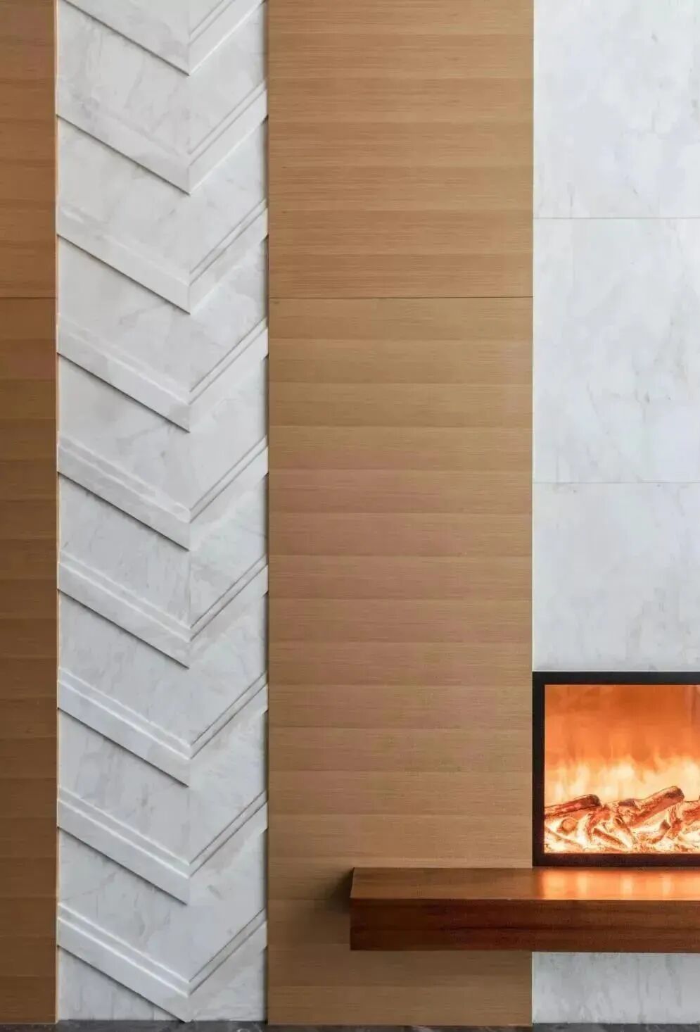 石材表面设计石材表面加工方式有抛光、亚光、喷沙、斧剁、水冲、火烧等。大多数都是选择采用抛光或磨光的处理方式。光面的加工却会有一个不可避免的问题—反光。无论原本的设计有多和谐的颜色,有多美丽的纹理图案,光面大理石的反光却破坏了整体的视觉效果,并且成为了业主(使用者)长期的痛苦。特别是对于黑色的大理石,其反光问题尤为严重,会让人觉得刺眼不舒服,同时在空间上也会有倒影错综的反效果。非光面石材的使用反倒有更好的效果,现今欧美的主流设计也是以不造成光污染的非光面设计为主的,采用复古面、水冲面、喷沙面、火烧面等加工,更有一种自然和谐的韵味。如果一定要选择光面大理石的话,可以通过将灯光进行平光处理,使灯光不产生反射炫光这样就可以了。不过这必须要现场处理,还要对灯和线路进行更改。